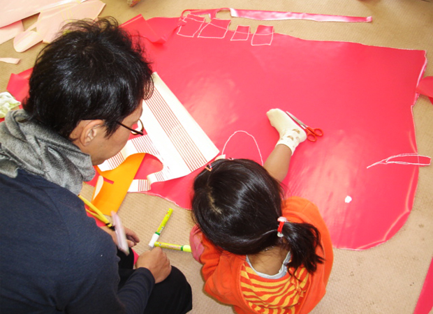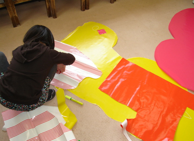 六甲ミーツ・アート「芸術散歩2010」招待作家、谷山恭子と今展覧会作品[ピクニック picnic]で展示される、動物ピクニックシートを一緒につくります。