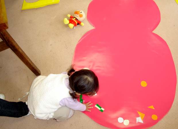 好きな色のシートを動物の形に切り抜いて、1人〜2人用の動物型のピクニックシートを制作します。