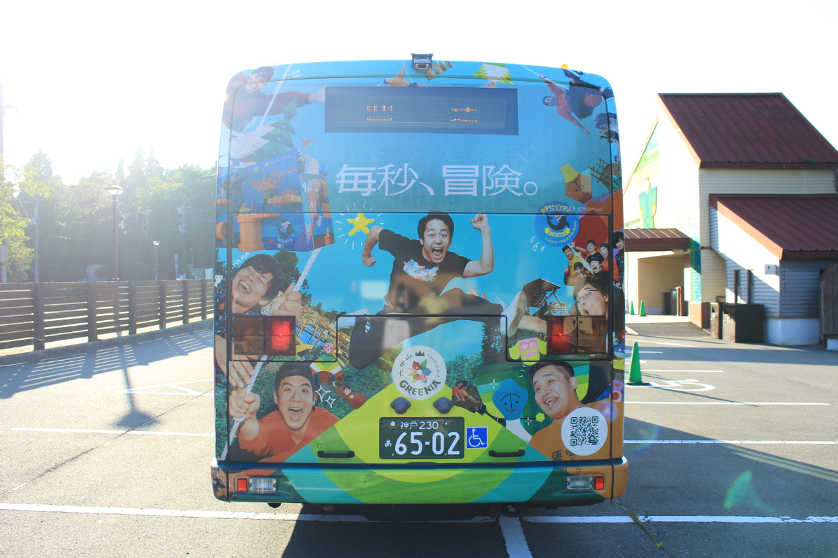 GREENIAスペシャルラッピングバスが登場! | 【日本最大級】六甲山アスレチックパークGREENIA/関西・神戸アスレチックパーク
