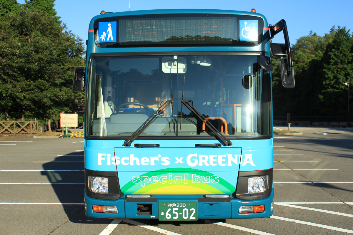 六甲ケーブル山上駅からグリーニアまでをつなぐ山上バスに、Fischer’s×GREENIA仕様のスペシャルラッピングバスが登場!