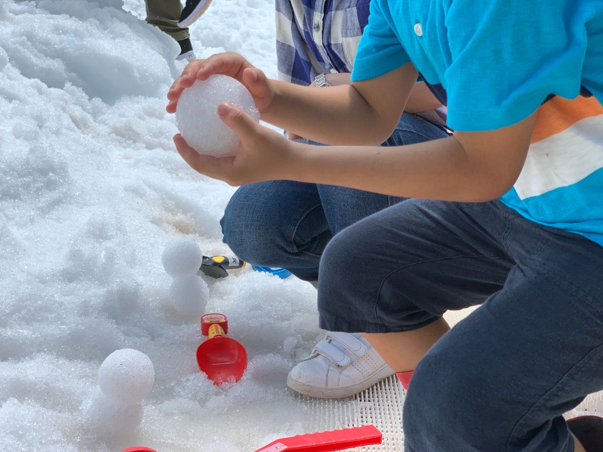 グリーニアの芝生エリアに、約150㎡の人工雪の広場が登場。雪の広場では雪あそびや雪玉ストラックアウトが楽しめます。夏に雪が見られる不思議な体験は、子どもだけでなく大人の方も一緒に“ひんやり“を感じていただけます。