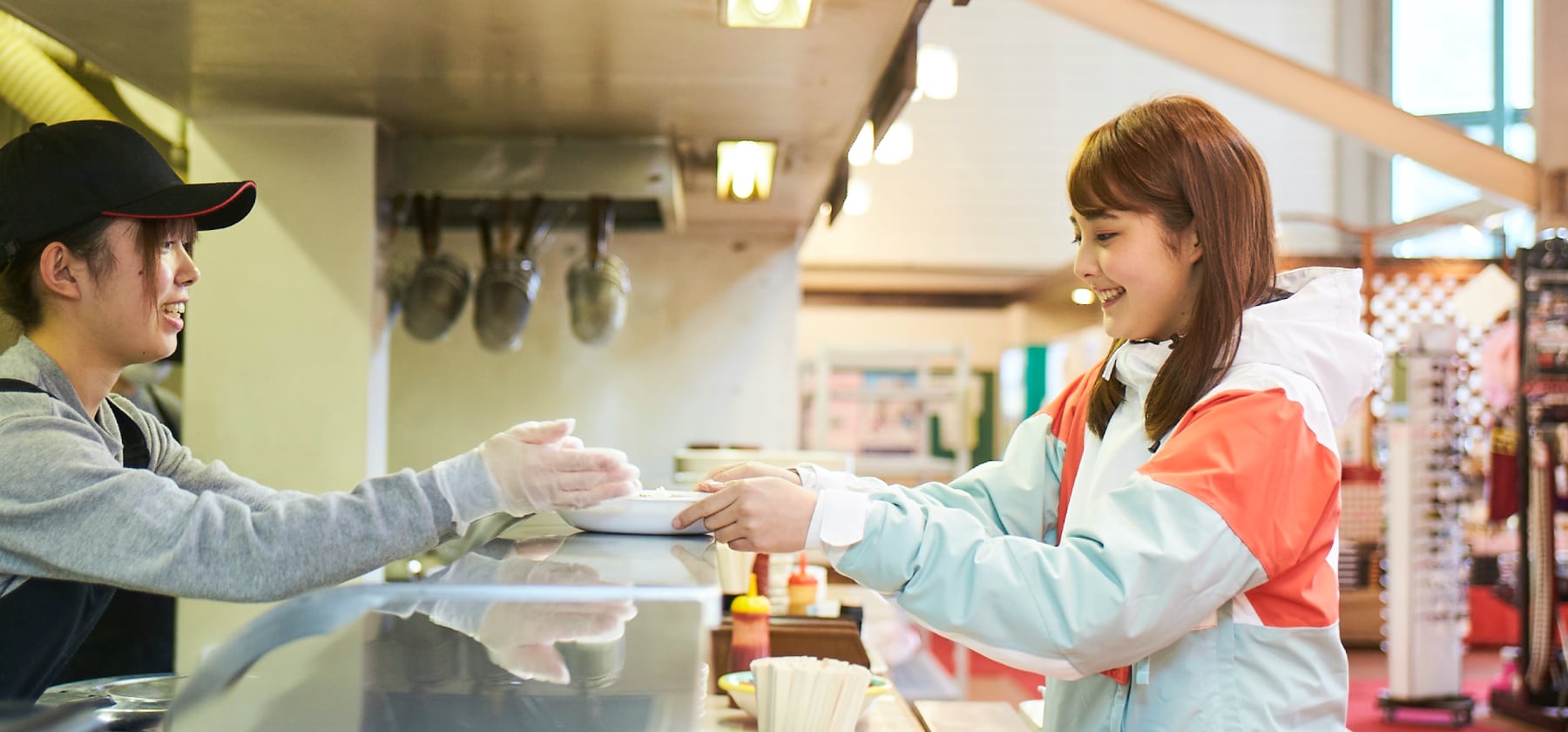 ショップ グリーンリーフ(ショップコーナー)雪遊び用品、体が温まるドリンクの販売