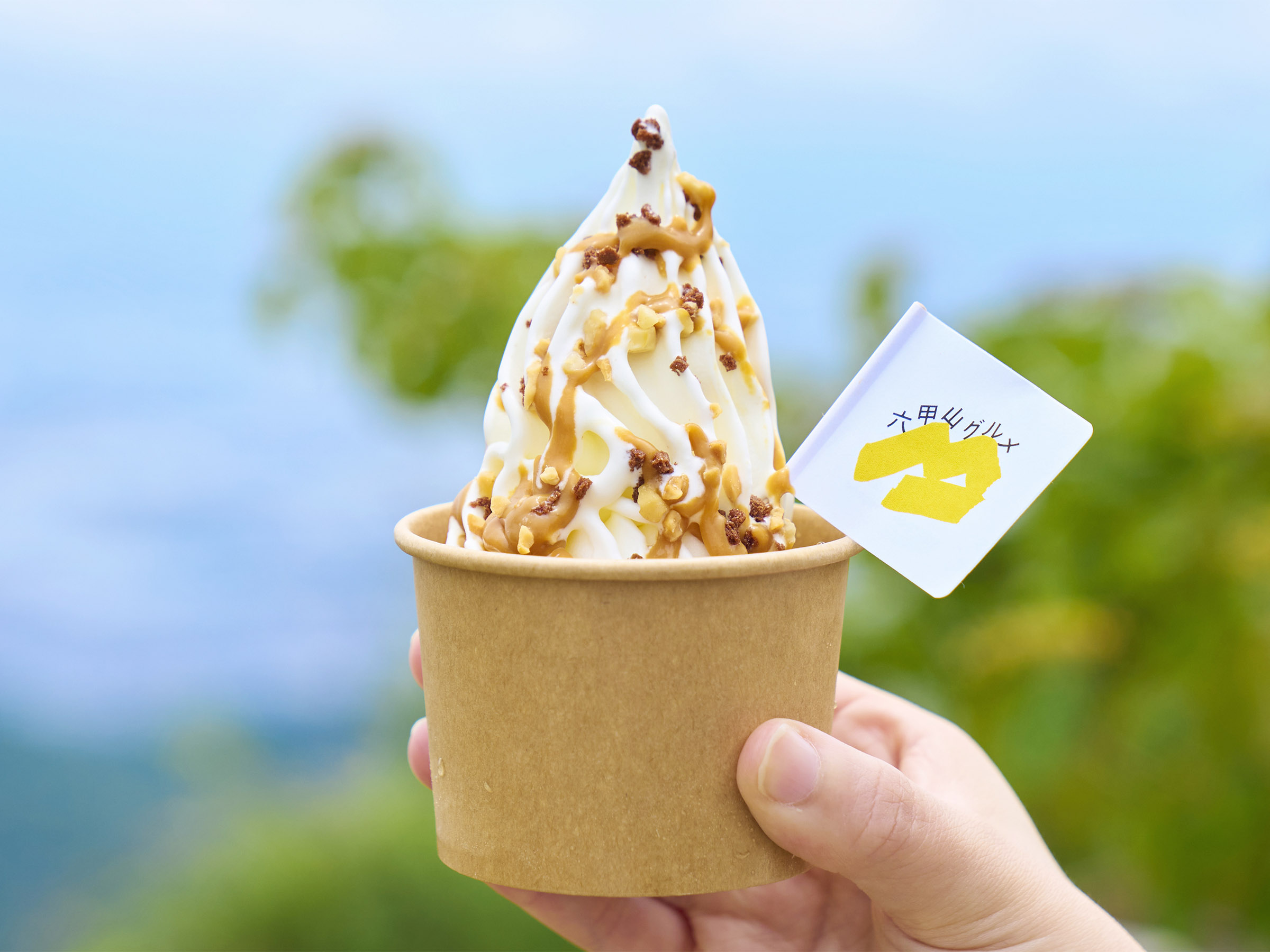 六甲味噌キャラメルをソフトクリームにかけた毎年恒例の人気スイーツ。