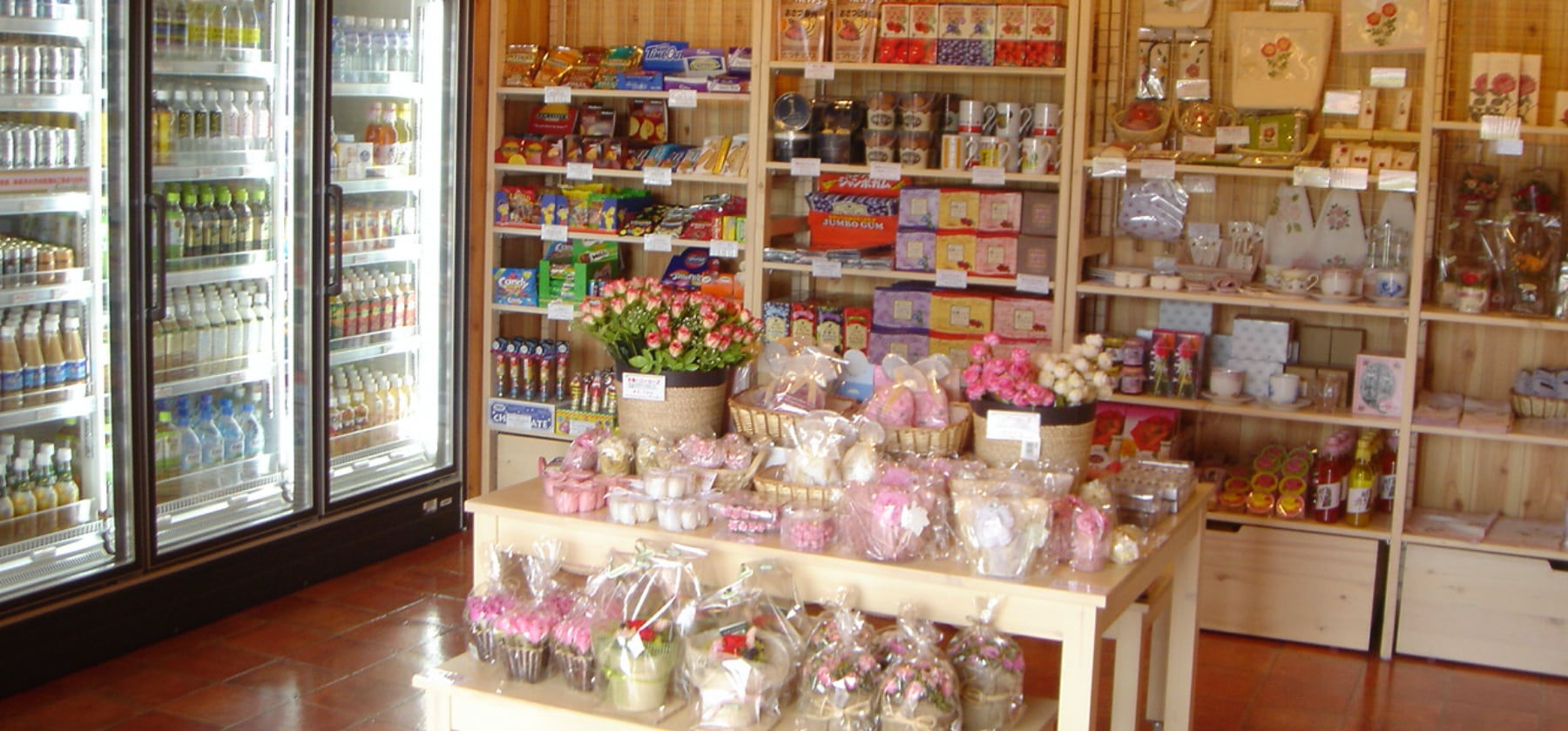 「六甲山アスレチックパーク GREENIA」内、テイクアウトコーナーとショップコーナーが併設されたミニショップ。小腹がすいた時や運動前後の水分補給はこちらでどうぞ!