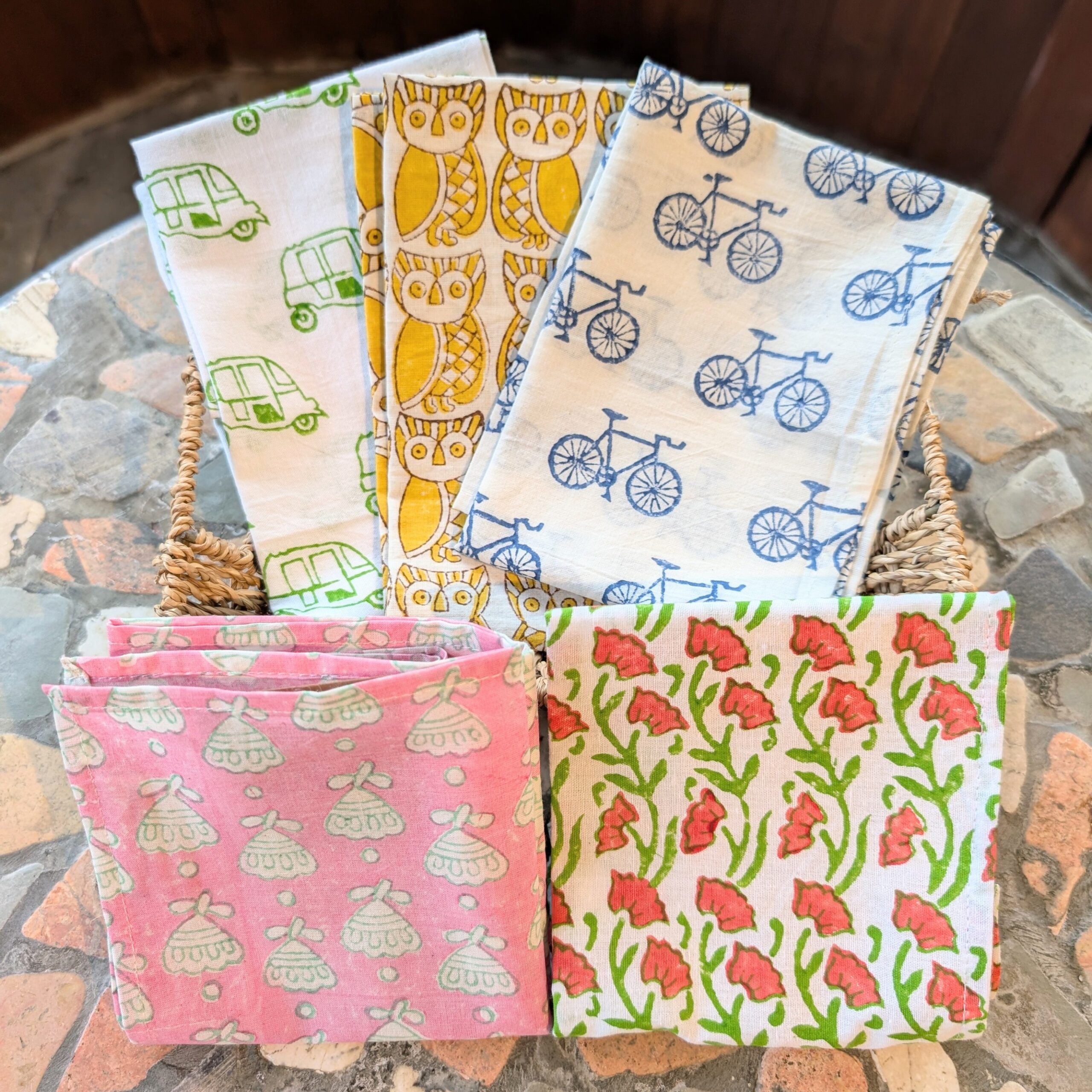職人が手彫りした木版を使い、手押しで染めていく伝統技術のブロックプリントでつくられています。一つ一つ違った風合いも、楽しめますね!